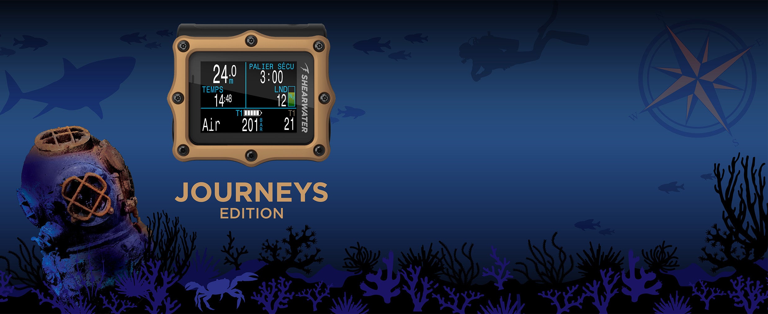 Son système d'alertes par vibrations puissantes et personnalisables attire l'attention lors des moments critiques de la plongée. Sa capacité de gestion de l'air avec jusqu'à quatre émetteurs Shearwater permet de passer facilement d'un ordinateur de plongée unique à une solution puissante pour la plongée technique avancée. L'ordinateur est alimenté par une simple pile AA remplaçable par l'utilisateur, dans un format réduit plus ergonomique.