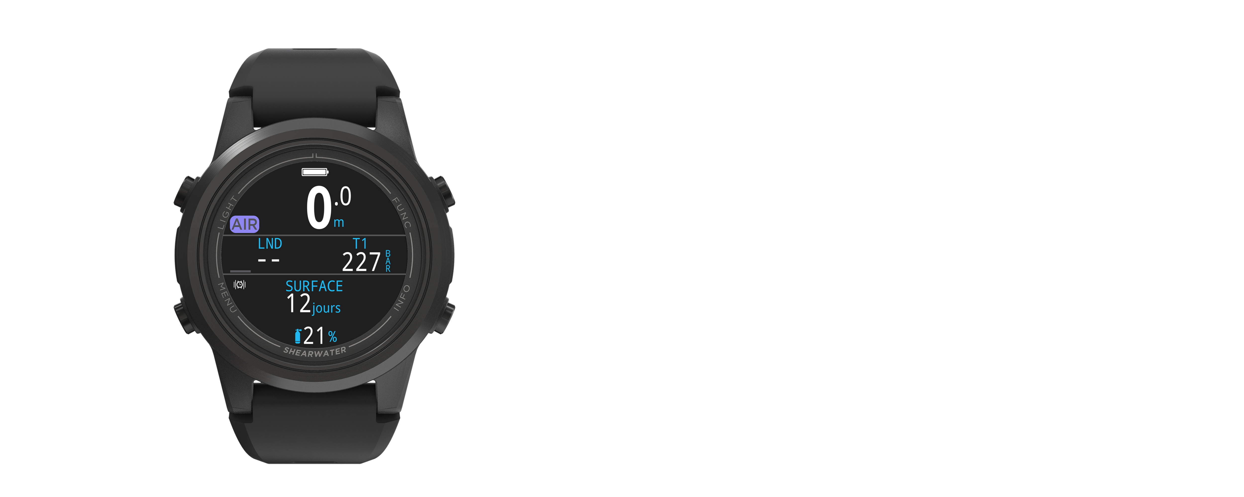 La Tern TX offre des fonctionnalités de montre de base et un look superbe, ce qui est parfait pour l'intervalle de surface et les week-ends de plongée. Nous n'incluons pas les fonctions de montre intelligente hybride. Shearwater fabrique des ordinateurs de plongée dédiés qui sont puissants, simples et fiables. Nous pensons qu'une instrumentation fiable et intuitive sous l'eau est essentielle à votre plaisir et à votre sécurité. L'environnement sous-marin n'est pas un endroit pour lire des manuels ou se souvenir d'appuyer sur des boutons complexes.