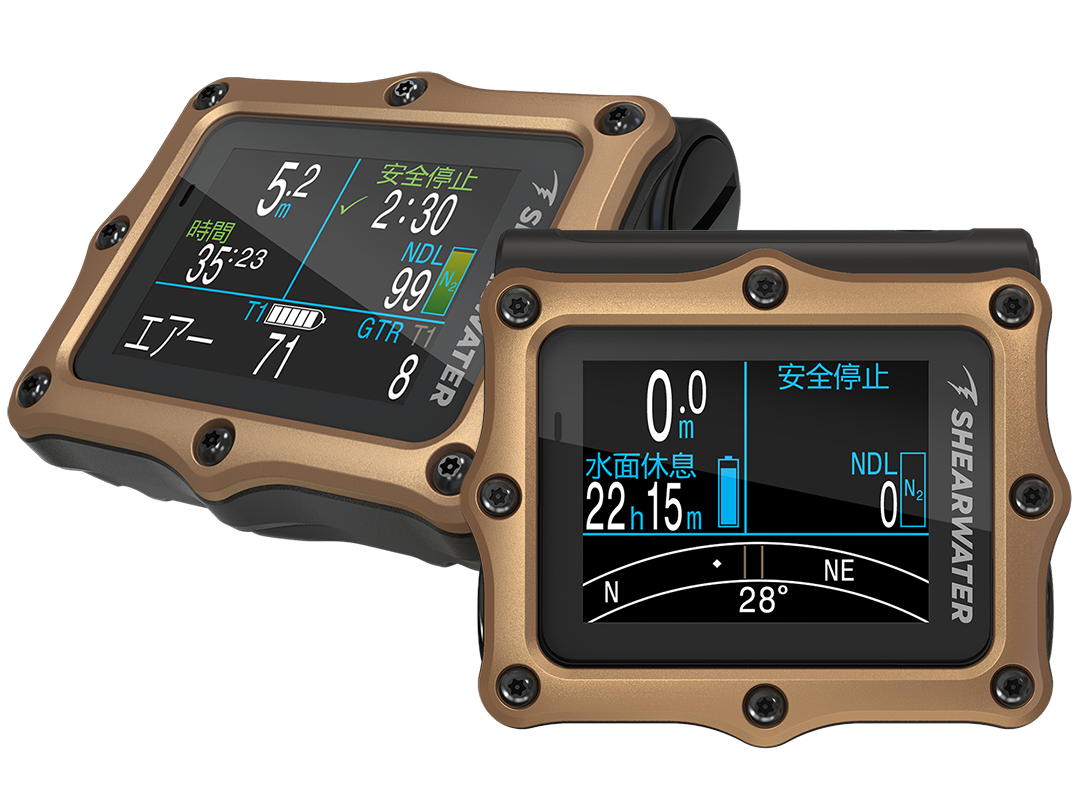 強力な振動とカスタマイズ可能なアラートシステムにより、ダイビング中の重要な瞬間に注意を喚起します。最大4台のShearwaterトランスミッターとの空気連携により、ダイバーが最初に購入したコンピューターから高度なテクニカルダイビングソリューションへと進化する余地を提供します。電源は、使い慣れた人間工学に基づいたコンパクトな形状で、ユーザーが簡単に交換できる単3電池1本で供給されます。