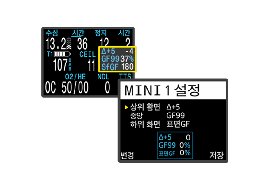 강력한 진동 맞춤형 경고 시스템은 다이빙의 중요한 순간에 주의를 환기시켜 줍니다.