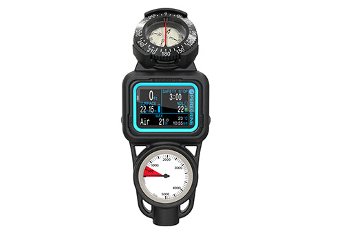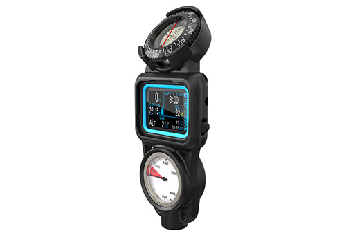 The Peregrine dive computer is combined with a north compass and SPG, all in one console connected to a HP hose.