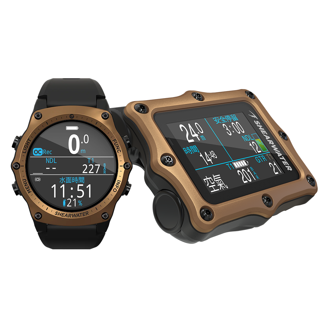 強力振動和可自定義的警報系統能在潛水關鍵時刻引起注意。與最多四個 Shearwater 發射器的空氣整合,讓您從潛水員購買的第一台電腦一路成長為強大的高階技術潛水解決方案。採用簡單的使用者可更換單節 AA 電池供電,保持熟悉的人體工學緊湊型設計。