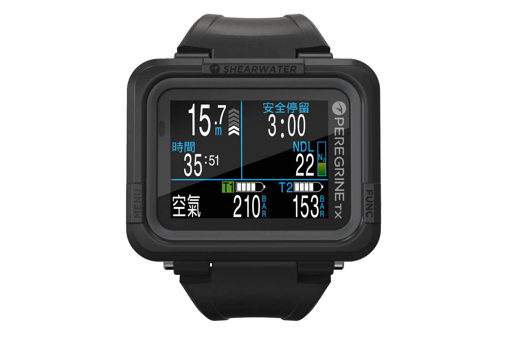 可以!像所有Shearwater電腦一樣,Peregrine TX支持減壓潛水。Peregrine TX可以編程最多3種氮氧氣體,最高100% O2,可在水下切換。它還包括內置的減壓潛水計劃器。